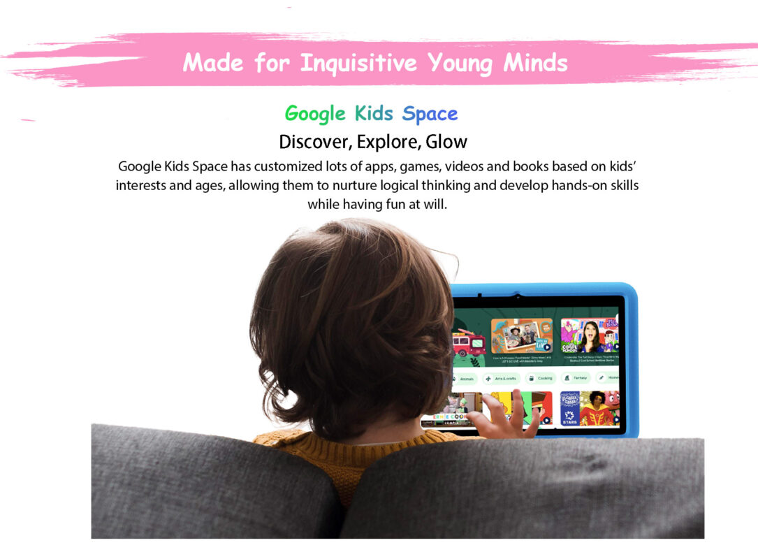Big screen size helps with visually rich content—videos, learning apps, storybooks