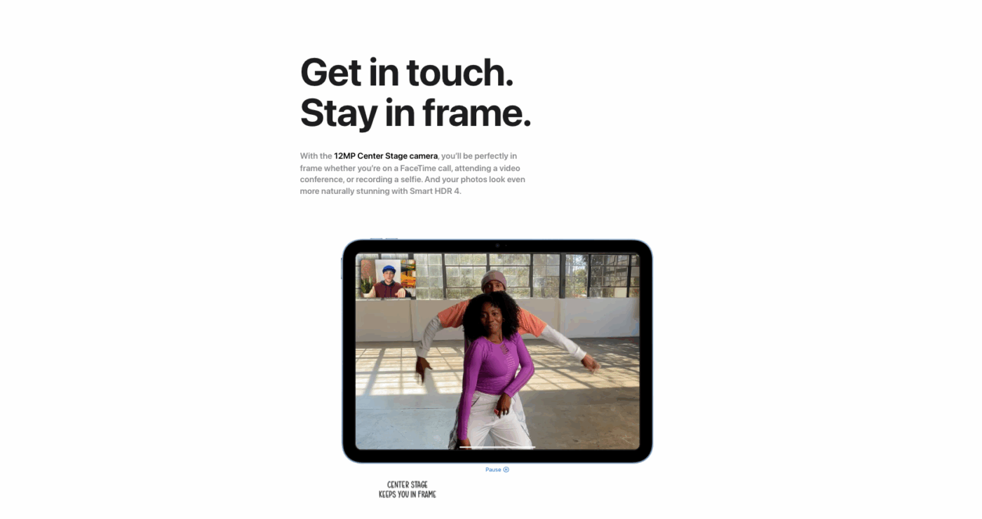 - Camera: 12MP Ultra Wide front camera with Center Stage, 12MP rear camera.