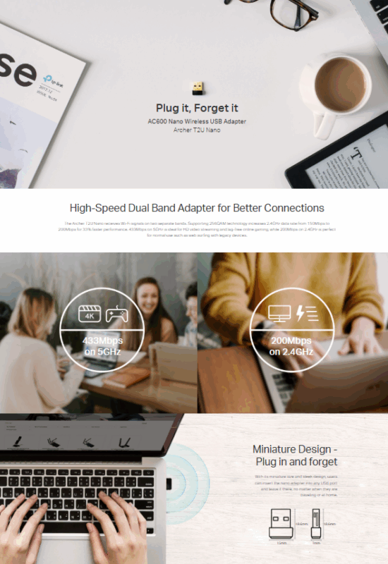 Unlike bulky adapters, the Archer T2U Nano features a plug-and-forget nano design, making it perfect for laptops. You can keep it connected all the time, avoiding the hassle of constantly plugging and unplugging your Wi-Fi adapter.