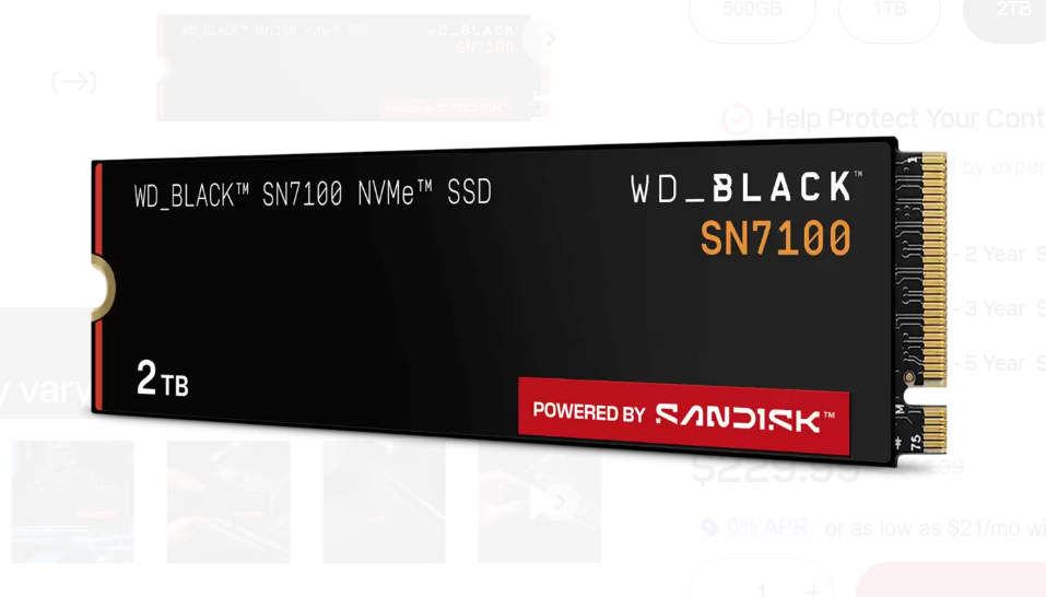 WD_BLACK SN7100 2TB NVMe SSD delivers ultra-fast PCIe performance, massive storage, and reliable endurance for gaming and professional workloads.